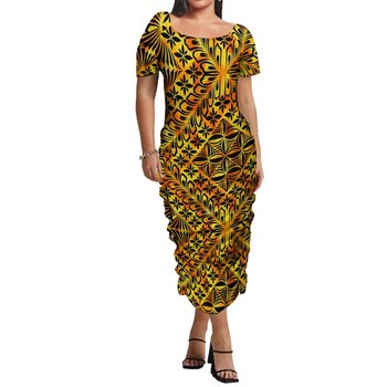 नई प्रशांत द्वीप डिजाइन कस्टम प्लस आकार की महिलाओं को डबल फ्राल शॉर्ट आस्तीन पोशाक पॉलिनेशियन प्यूलेसी कपड़े आकस्मिक पोशाक 2 पीसी