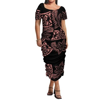 Nuovo stile isolano del Pacifico Custom taglie forti da donna a doppia manica corta abito Polynesian Puletasi abito Casual 2 pz