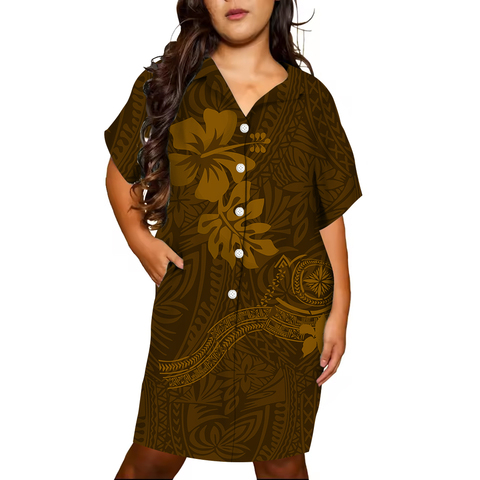 2025 nuovo arrivo Hawaiian ibisco stampa floreale taglie forti donna mezza manica camicia abito personalizzato con tasche laterali abiti Casual