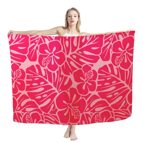 Prix bon marché Promotion polynésien Tribal Tahiti Style rose Hibiscus impression écharpe coupe-vent confort Sarong motif personnalisé 1MOQ